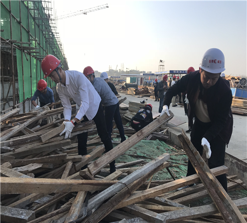 當天,二支部全體黨員前往馬壕污水處理廠擴容工程現(xiàn)場參觀學習。項目負責人詳細的介紹了項目基本情況,并帶領(lǐng)全體黨員在現(xiàn)場開展治理揚塵、搬運模板、構(gòu)件等志愿服務(wù)活動。黨員們佩戴黨徽,頭戴安全帽,以一名項目建設(shè)者的身份積極參加馬壕污水處理廠現(xiàn)場建設(shè),以實際行動支持項目建設(shè),助推重點工程進度。
